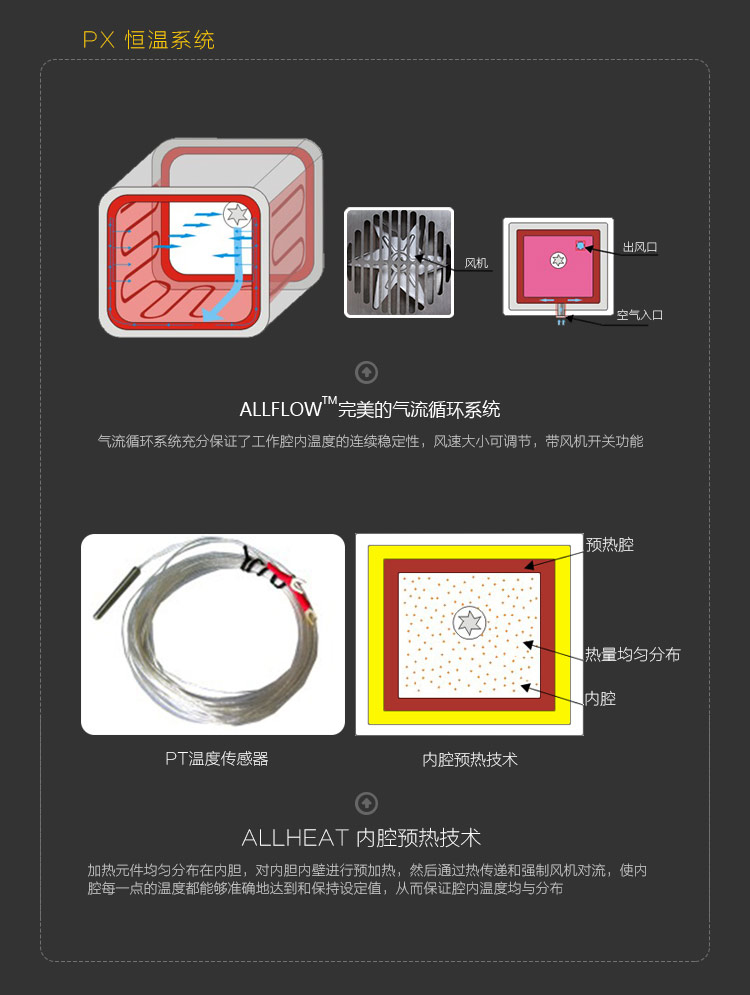 采用國際先進的ALLHEAT™內腔預熱技術,可滿足不同溫度要求,并提供恒定的溫度環境,配合Pro-lnsulation™隔熱保溫技術,保證了樣品的實驗和培養順利進行;