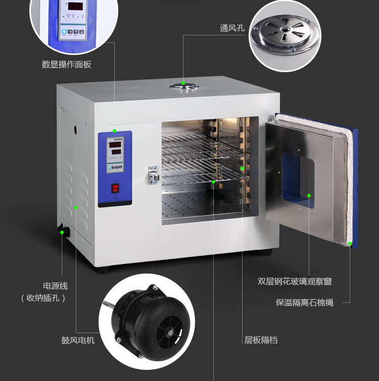 供工礦企業(yè)、化驗(yàn)室科研單位等作干燥、烘焙、熱處理、加溫,但不適用于揮發(fā)性、易燃、易爆等物品,以免引起爆炸。